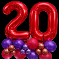Double digit 40″ number foil balloon of your choice with a base consisting of matching coloured 12″ latex balloons with 5″ latex balloons for accents. All balloons will be inflated with regular air and two weights will be attached to the entire display for stability. The display will not float.