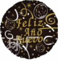 Spanish Round 18 Inch Feliz Año Nuevo Black and Gold Foil Balloon