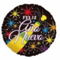 Spanish Round 18 Inch Feliz Año Nuevo Black with Colourful Stars Foil Balloon