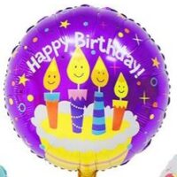 Happy Birthday 18 Inch Round Foil Balloon Purple with Yellow Cake