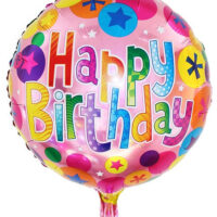 Happy Birthday 18 Inch Round Foil Balloon Pink with Colourful Letters