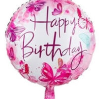 Happy Birthday 18 Inch Round Foil Balloon Pink with Butterflies