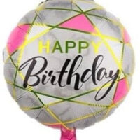 Happy Birthday 18 Inch Round Foil Balloon Pink with Grey Marble