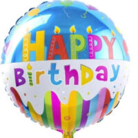 Happy Birthday 18 Inch Round Foil Balloon Blue with Colourful Cake