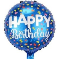Happy Birthday 18 Inch Round Foil Balloon Blue with Colourful Confetti