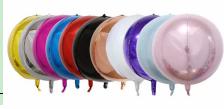 A 4D/3D 18 inch ball-shaped, plain coloured foil balloon with no print. Can be inflated with either air or helium. Please see balloon guide for details.