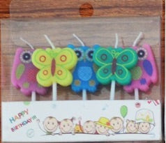 Set of butterfly and owl-shaped candles.