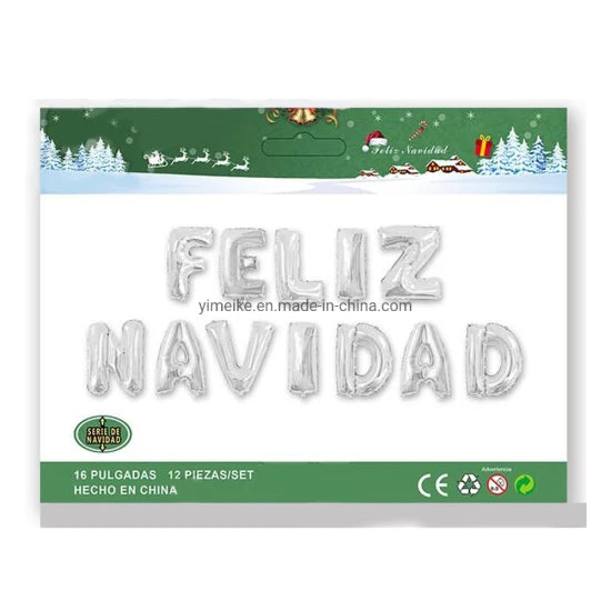 Feliz Navidad 16 inch letter foil balloon banner. Can only be inflated with air. Please see balloon guide for details.