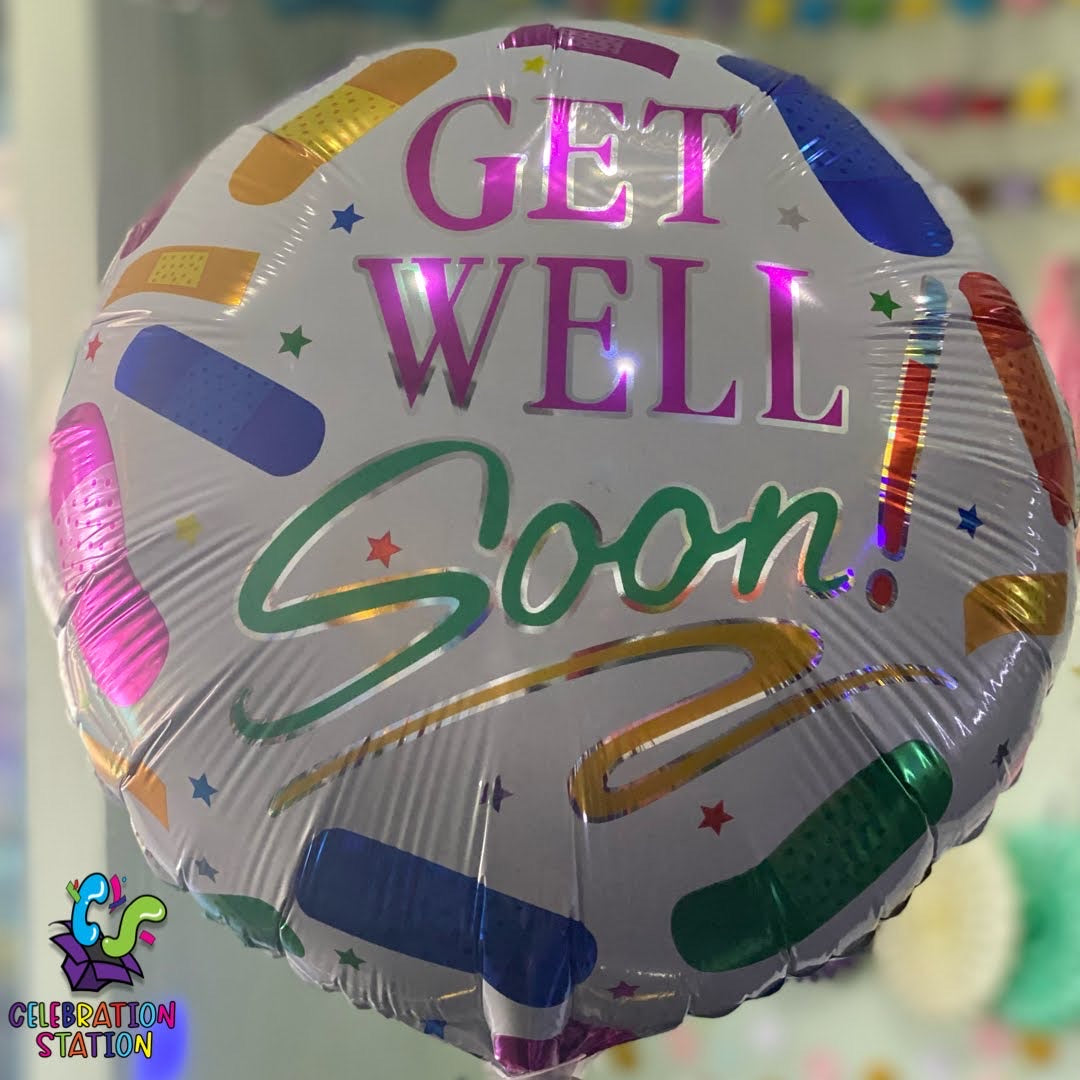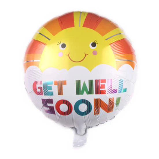 Get well soon 18 inch round foil balloon. Can be inflated with either air or helium. Please see balloon guide for details.