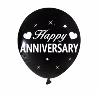 Single Happy Anniversary 12 inch latex balloon. Can be inflated with either air or helium. For UNINFLATED balloons, please visit the “Balloon Packs” category. Please see balloon guide for details.