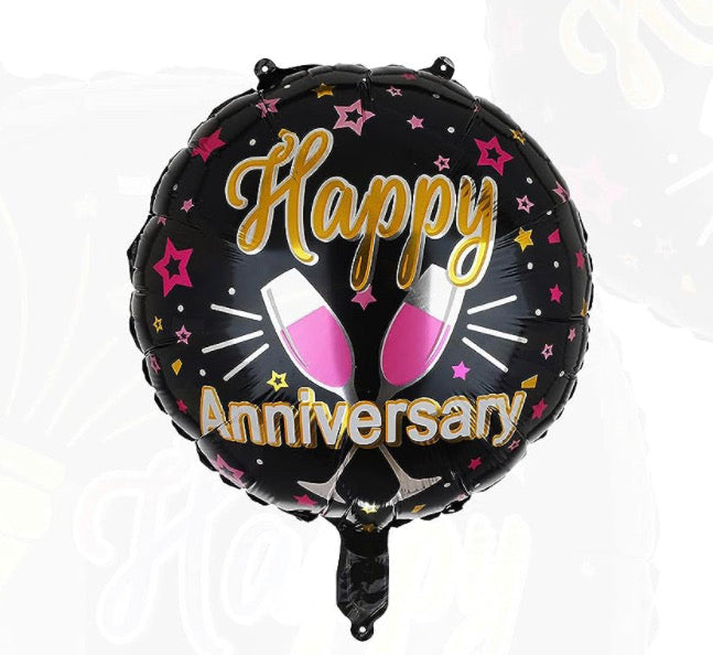 Happy Anniversary black round 18 inch foil balloon. Can be inflated with either air or helium. Please see balloon guide for details.
