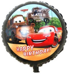 Happy birthday 18 inch round Cars-themed foil balloon. Can be inflated with either air or helium. Please see balloon guide for details.