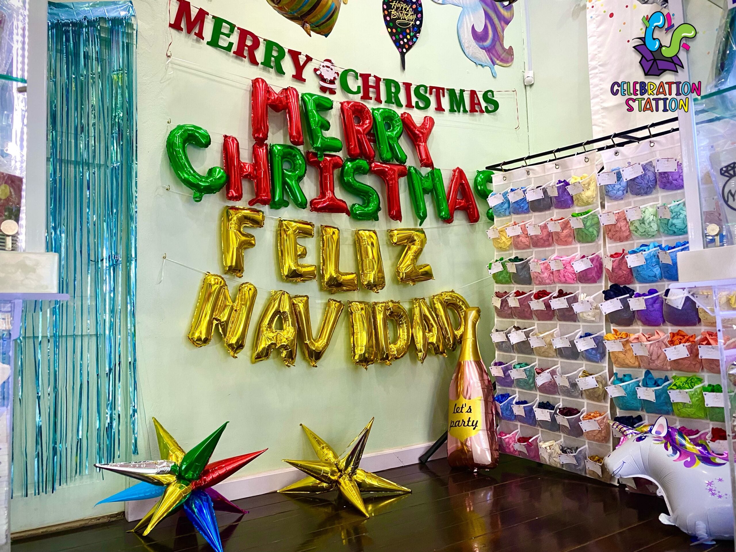 Merry Christmas letters foil balloon. Can only be inflated with air. For this option, the balloons will not be inflated. Please see balloon guide for details.