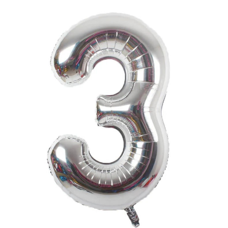 16 inch number three foil balloon. Can only be inflated with air. Please see balloon guide for details.